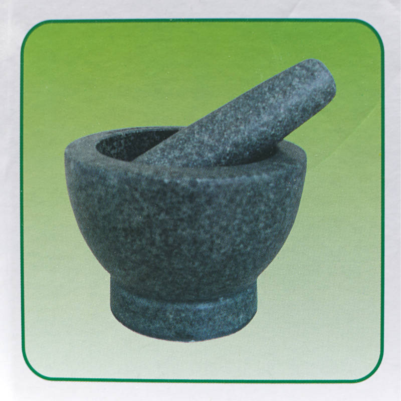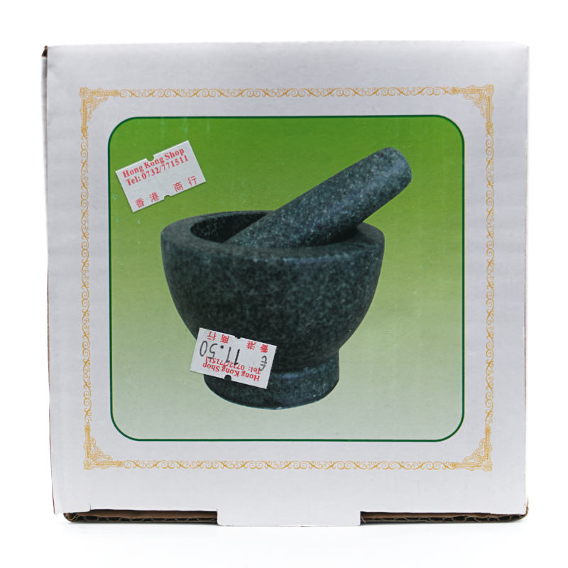Mörser mit Stößel 10 cm, handlich und eigentlich unverzichtbar. Orientalische Köche bevorzugen Stößel und Mörser aus Granit oder Stein, da diese eine raue Oberfläche haben, die die zu zerkleinernden oder zu zerstoßenden Zutaten besser greifen lässt.